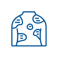 - Placas elevadas e inflamadas que parecem vermelhas ou mesmo acastanhadas, dependendo do tom de pele do paciente;